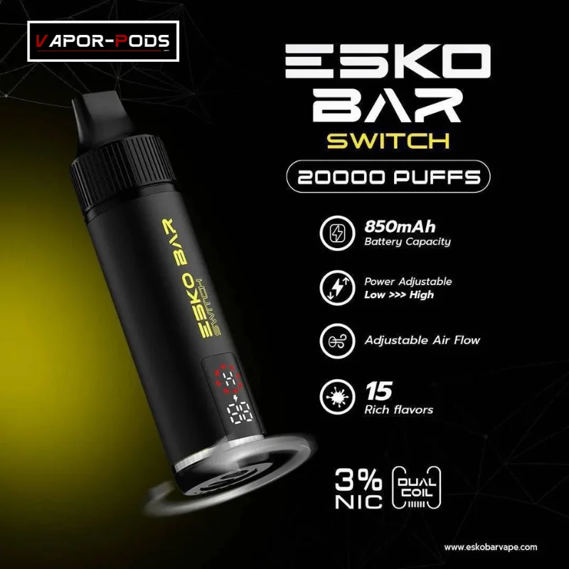 | กลิ่น ESKO BAR SWITCH 20K | พร้อมสูบ_Kit_Apple Aloe, พร้อมสูบ_Kit_Cola, พร้อมสูบ_Kit_Cool Mint, พร้อมสูบ_Kit_Blueberry, พร้อมสูบ_Kit_Grape, พร้อมสูบ_Kit_Honeydew, พร้อมสูบ_Kit_Lychee, พร้อมสูบ_Kit_Pink Guava, พร้อมสูบ_Kit_Pineapple, พร้อมสูบ_Kit_Mix Berry, พร้อมสูบ_Kit_Watermelon Ice, พร้อมสูบ_Kit_Watermelon Lime, พร้อมสูบ_Kit_Strawberry Banana, พร้อมสูบ_Kit_Strawberry, พร้อมสูบ_Kit_Yogurt, หัวรีฟิล_Apple Aloe, หัวรีฟิล_Grape, หัวรีฟิล_Lychee, หัวรีฟิล_Honeydew, หัวรีฟิล_Pink Guava, หัวรีฟิล_Mix Berry, หัวรีฟิล_Pineapple, หัวรีฟิล_Strawberry Banana, หัวรีฟิล_Strawberry, หัวรีฟิล_Watermelon Ice, หัวรีฟิล_Watermelon Lime, หัวรีฟิล_Yogurt |