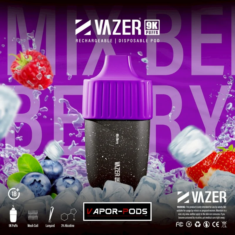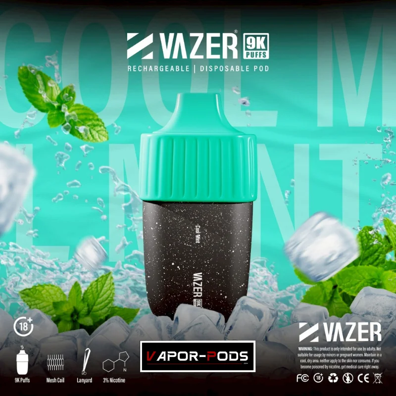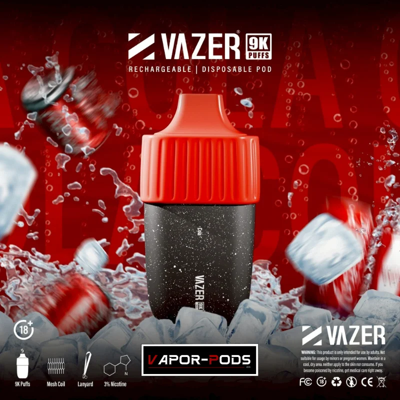 | กลิ่น Vazer 9000 puffs | Cola, Blueberry, Cool Mint, Grape, Double Apple, Gummy Bear, Lemon Soda, Lychee, Strawberry Kiwi, Mixberry, Strawberry Candy, Fruity Mix, Watermelon, Watermelon light nic0%, Cola Zero nic0% |